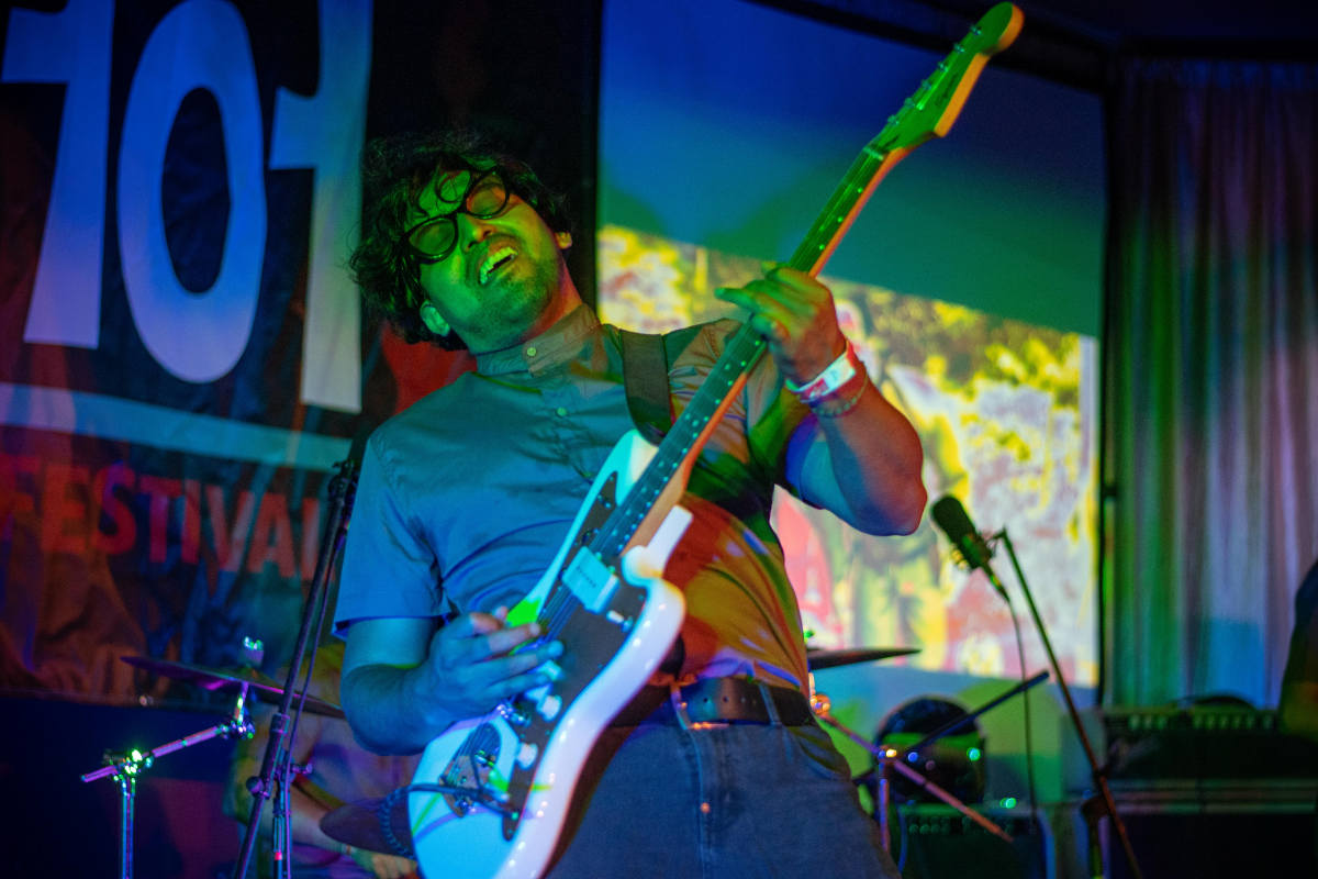 In between I caught a moment of The Verbtones on the other stage. They had three sets to fill so they jumped around between originals and covers. That room is difficult, with a smaller, more subdued crowd, smaller stage, worse lighting and sound, but their guitarist Kyle was working it well. Side note, make sure to check out his Beyond the Surf project, which I believe will include a video of sorts about SG101. They revealed towards the end that they had just met the bassist right before this, and had zero rehearsal. I wouldn't have guessed! As I left one of their sets they were playing "Black Sand Beach", and as I walked into the next room the exact same song picked up where it left off, in this case played by the next band I'm going to talk about...