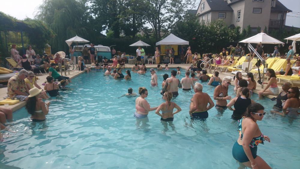 Hi-Tide Summer Holiday isn’t an all-day onslaught of music like most of the other festivals. There’s light enrichment for most of the day, including vendors and DJs by the Asbury Hotel Pool, as well as a little live exotica music from The Hula Girls and Slowey and the Boats. While I did take a dip in the pool, I didn’t catch much of those bands. I wanted to see the ocean! Well, it was a weird day to see the ocean, with a heavy fog out, but I did a lil’ body surfing and hung out on the beach for a bit before taking a stroll down the boardwalk to see the sights.