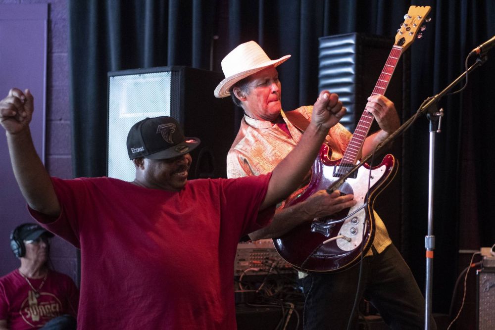 You wanna know how to be a hit with the people in your Lyft? Tell them you’re going to a surf music festival. Between this weekend and SG101, it never failed to strike up a conversation. The other thing I kept hearing was “You’re from New Orleans? So you’re used to this heat, then?” Not quite, more like I’m familiar with this heat. By the time I got to the Little Tree Art Studios it was a little after noon and the sun was laughing at everyone below. Stompfest is an indoor/outdoor deal with the bands performing in a small indoor space that wouldn’t even accommodate more mainstream acts, but there’s plenty of people outside. Not just vendors but people in lawn chairs sitting in the shade, sometimes under tents. As hot as it was, I like the setup, feels like a block party and I’m definitely a creature that enjoys the light.