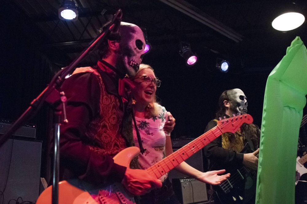 I loved The AmpFibians’ Enigma from the Deep so they were one of the bands I was most looking forward to seeing. Before playing a note you have to like them, they’re wearing matching gold suits… except for their keyboardist in a green shirt, sunglasses and a fake beard. The AmpFibians are known for changing up their style and did so with ease, swapping between regular surf, spaghetti western, Halloweeny stomps, Link Wray-styled yee-haw, you name it. The crowd was loving it too, even requesting the song “Wolf Whistle”. I mean take a look at this guy: