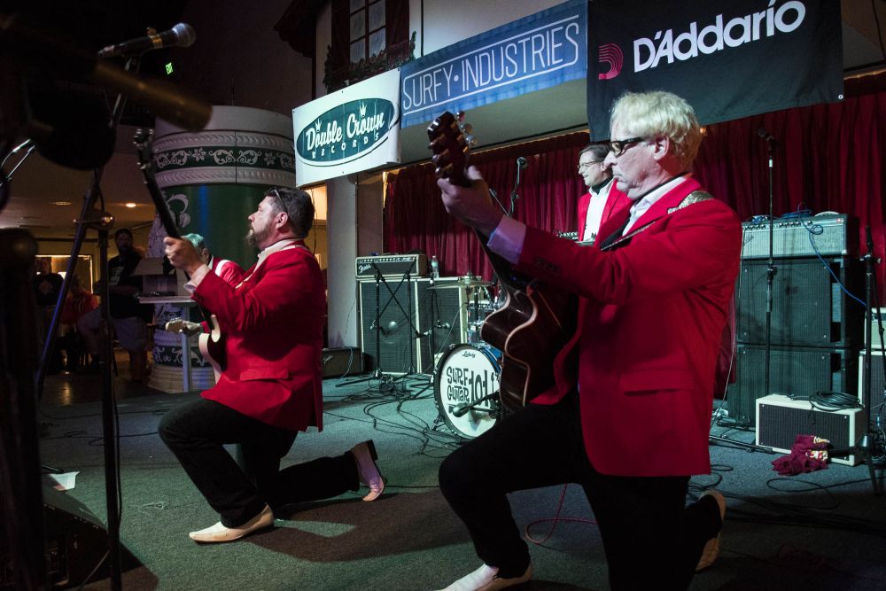 Next up: The Exotics. I don't know too many genres where synchronization is such a big thing, and it's hard not to love it. Matching shirts, matching pants, and I have so many shots where all three guitarists are pointing their instruments in in unison. They played a lot of my favorites of theirs but it was especially cool to hear Jetsetter and Sandoway. Some cool covers in there too like The Cherokees' Uprising and Calvin Cool's El Tecote.
