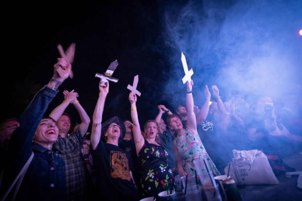 Their gimmicks are strong, with not only synchronized guitar movements, drummer beating guitar strings and other common ones, but they started throwing out cardboard swords, shields, and other weapons for the audience to wave around. When their set was complete, they retreated into their Trojan horse (pretty sure that’s not historically accurate), then threw the horse into the audience for the encore playing “Au Revoir”, a song suited for their departure like the song chosen for their arrival. Though not everybody was a blown over as I was, it was one of the best shows shows I’d ever seen, even better than their SG101 performance which I thought was great (and they apologized for because they were tired).