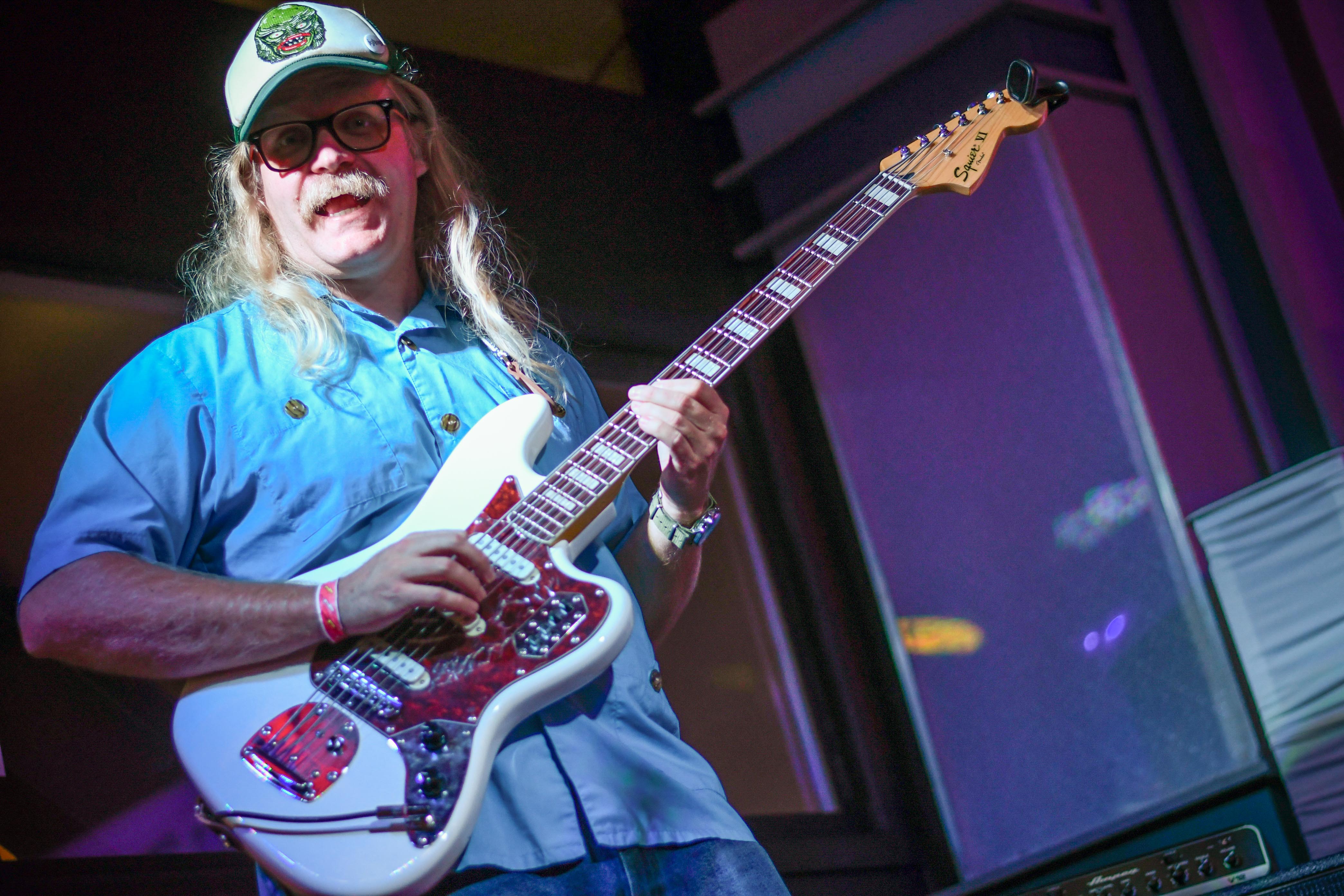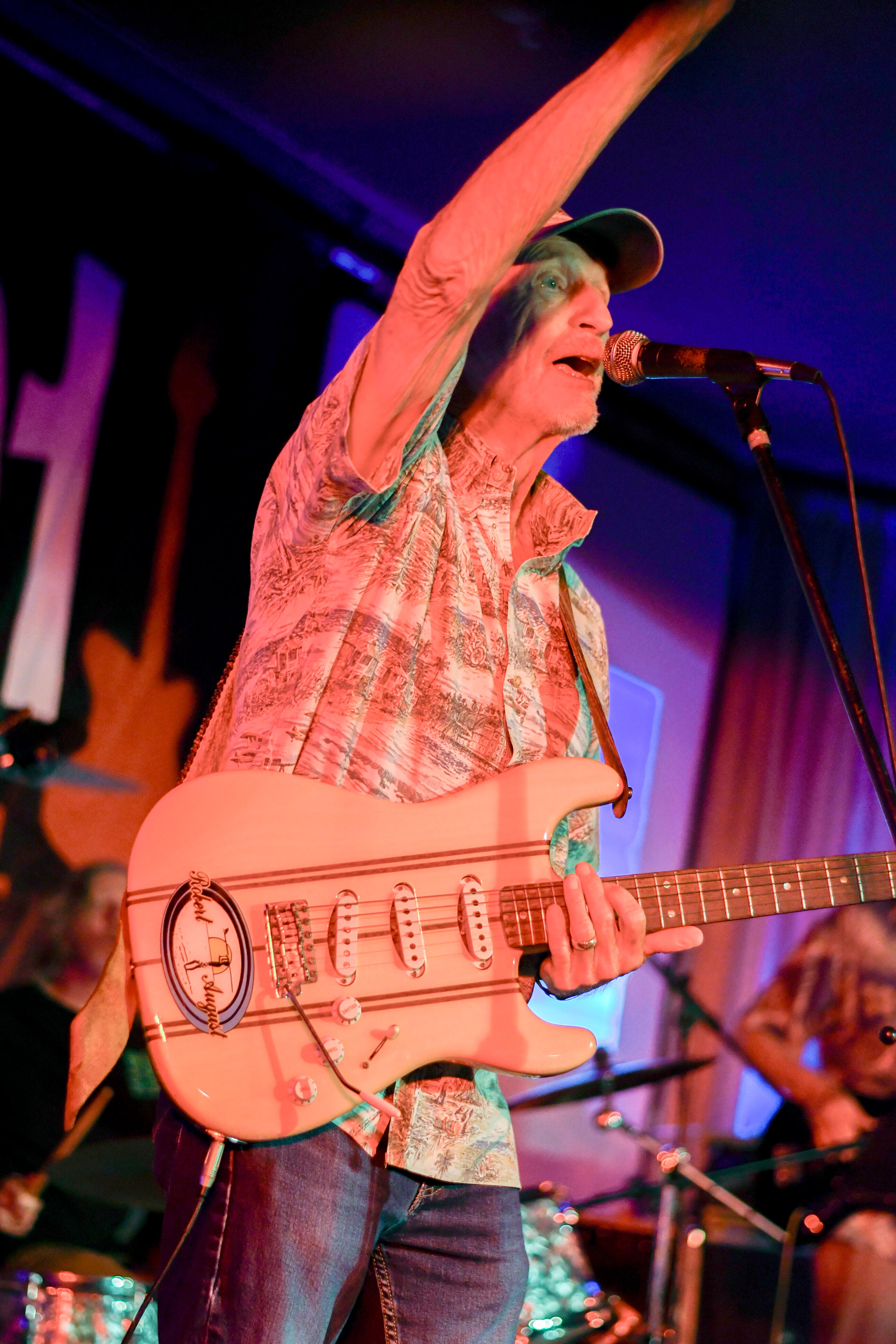 The Insect Surfers were celebrating 45 years, which was kind of funny to me because you know how time seems to have just disappeared during COVID? I feel like they had just celebrated 40 years when I saw them in 2019 at Surfer Joe and Surfguitar101. I was determined to try to capture the Dave Arnson experience in still photos, and I'd say I largely failed because that's really not the correct medium. He's always in motion, and photos can't capture moments of marine biology education, "hat songs", "we tune because we care", and his trusty array of dance moves. When explaining the namesake of the song "Vaquita", an extremely endangered dolphin with only about six left in existence, Jonpaul (on bass obviously) joked "they've gotta be gone by now". I had also wondered how closely Dave was monitoring this, since I'd heard the same intro in 2019. Well according to the best information I could find, he was up-to-date, and he even informed me that a calf was recently spotted.