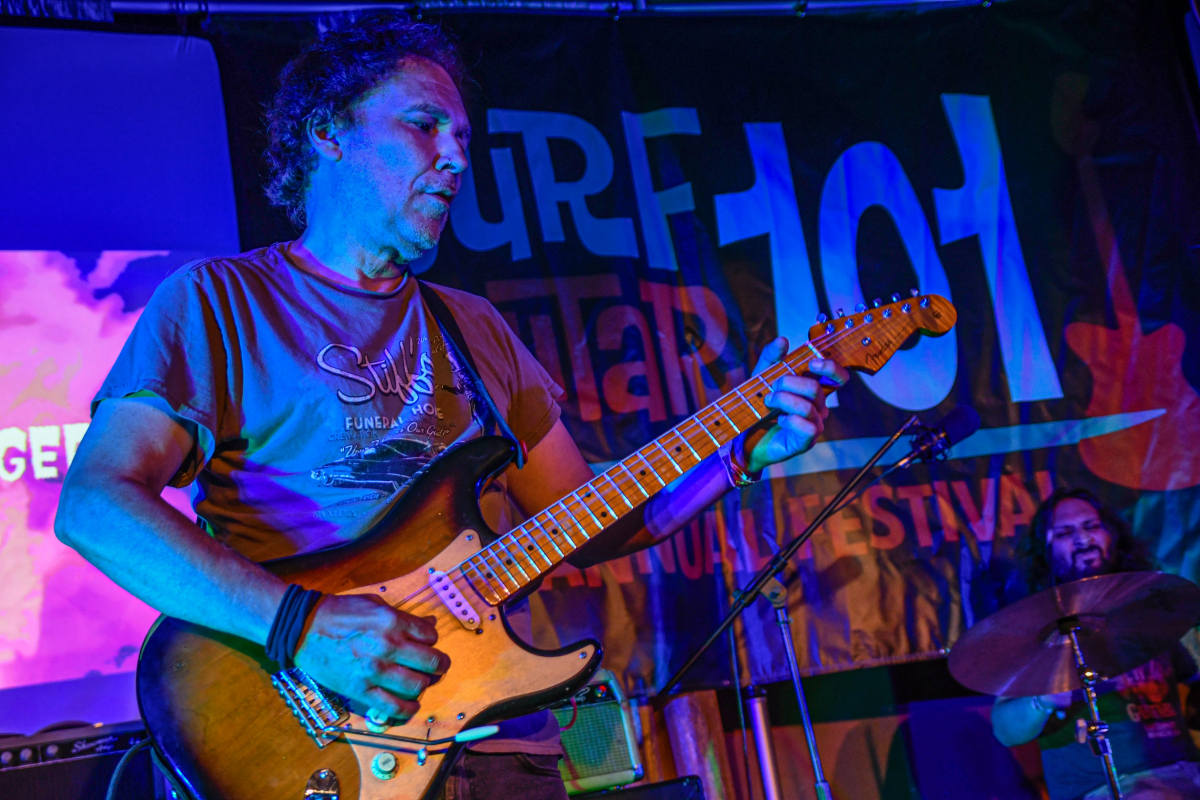 I've always thought 3 Balls of Fire was a difficult band to pin down. One moment they're playing fairly traditional surf (props to them for digging deep covering Wes Dakus on "Las Vegas Scene) , then the next they're leaning into Mermen-esque psychedelic territory. As mentioned earlier, the schedule was pretty off at this point and every band's set was shortened. 3 Balls of Fire were clearly a bit destabilized by the news that they had only a handful of songs left.