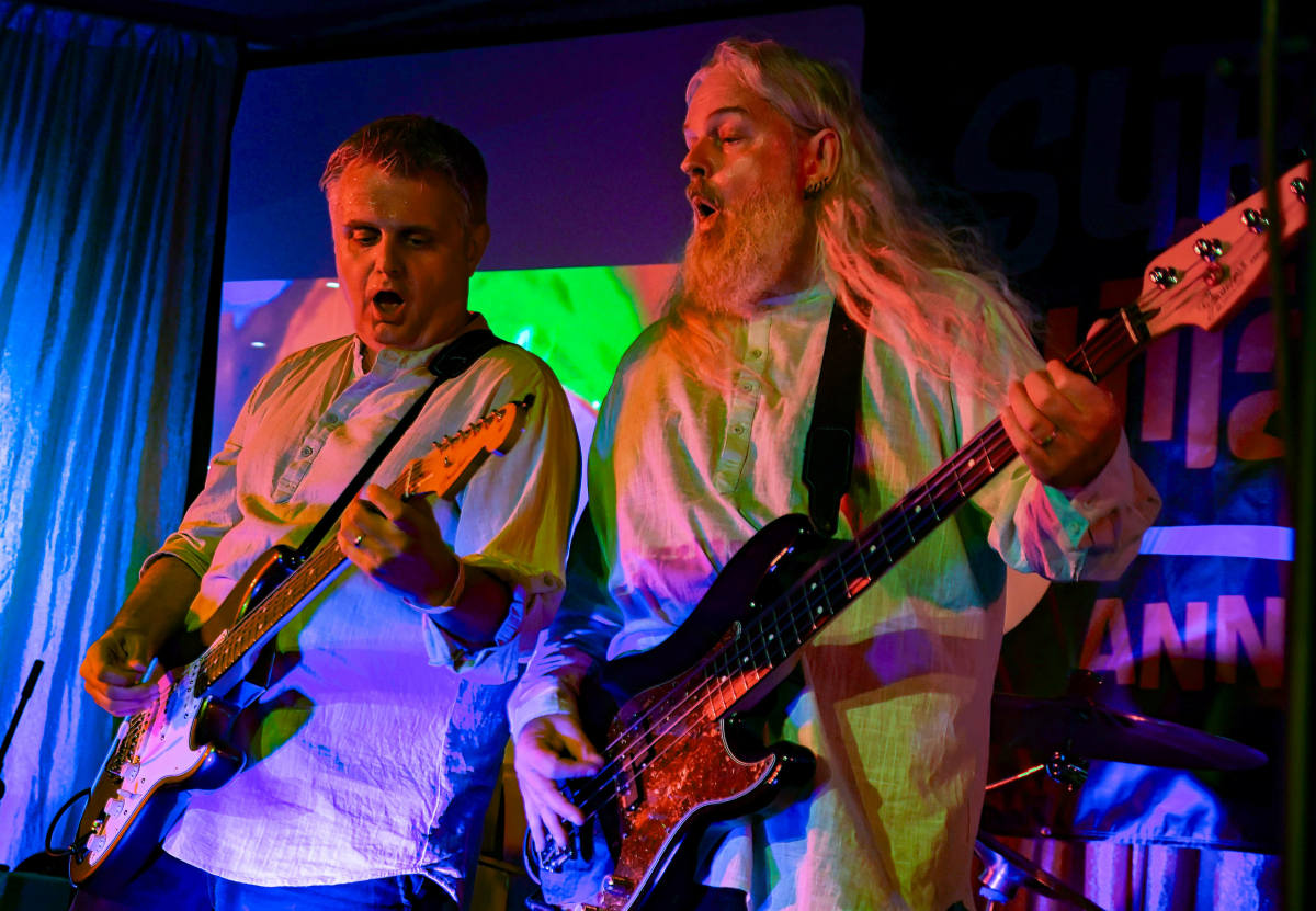 I think this is a good point to mention The Evanstones and The Seatopians on the other stage. I barely got to see much of either group, so mention is probably the most I can muster. I enjoyed hearing some nicely done vintage covers from The Evanstones. I'm very happy that The Seatopians didn't suffer the same tragedy as their last appearance when their car was broken into with laptops and gear stolen. Their bassist requested that he be sent any photos taken of him so that his mom could see, so hope she likes these.