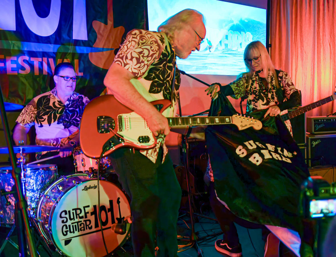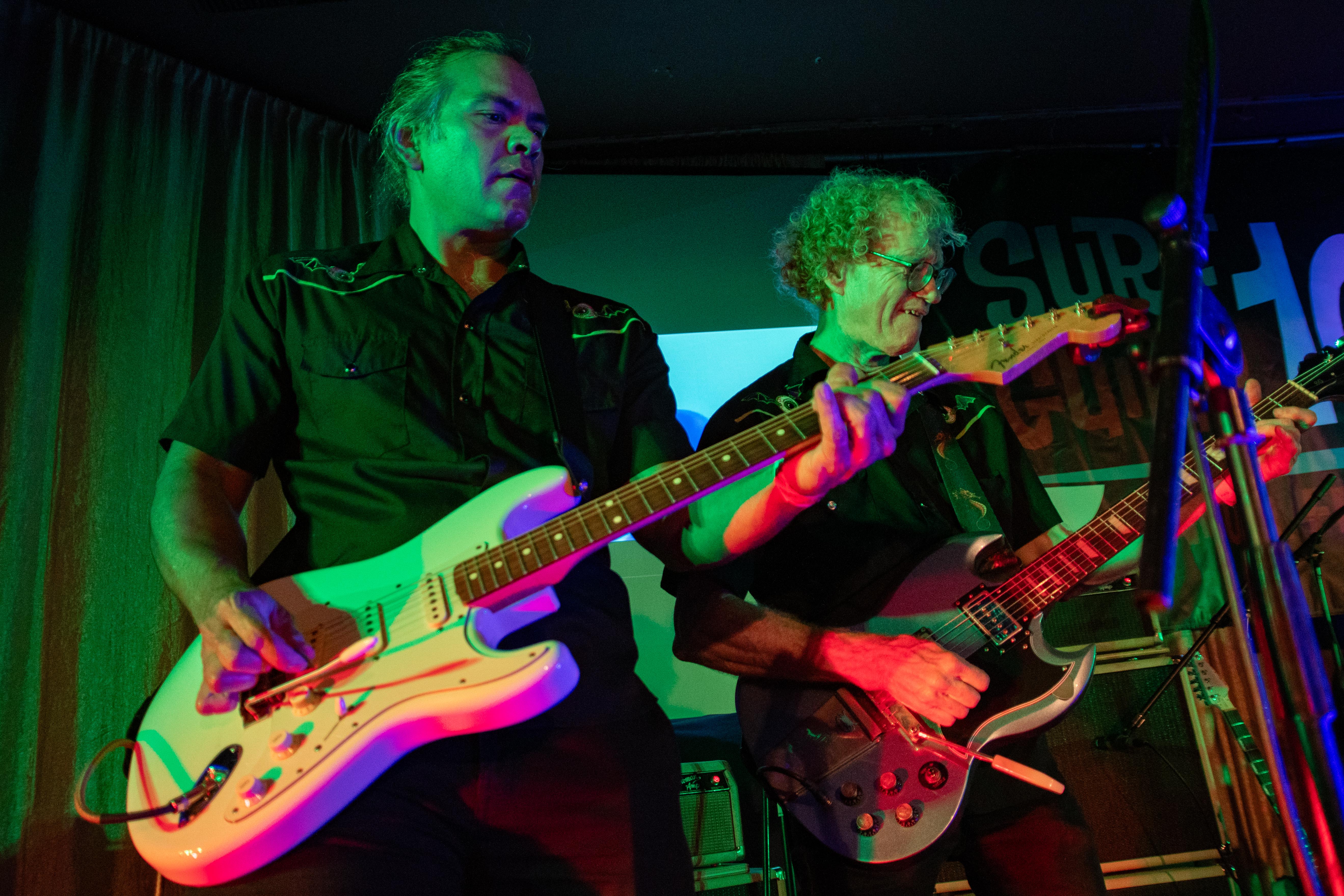 Thankfully the first thing of the day was a nice opportunity to sit down: a screening of Sound of the Surf, a documentary about surf music old and new, filmed over the course of decades by director Tom Duncan. Tom tragically passed away as it was in its final stages, and Jon Blair (of Jon and the Nightriders) has picked it up to bring it over the finish line. According to Blair, not much has changed since they showed it in 2023, so I won't rehash it. However, it sounds like just about all the song licensing has finally cleared, and the last step is to find a distributor. It's a fun film for surf nerds and a great primer for the genre to the uninitiated, and I really hope it will see the light of day very soon.