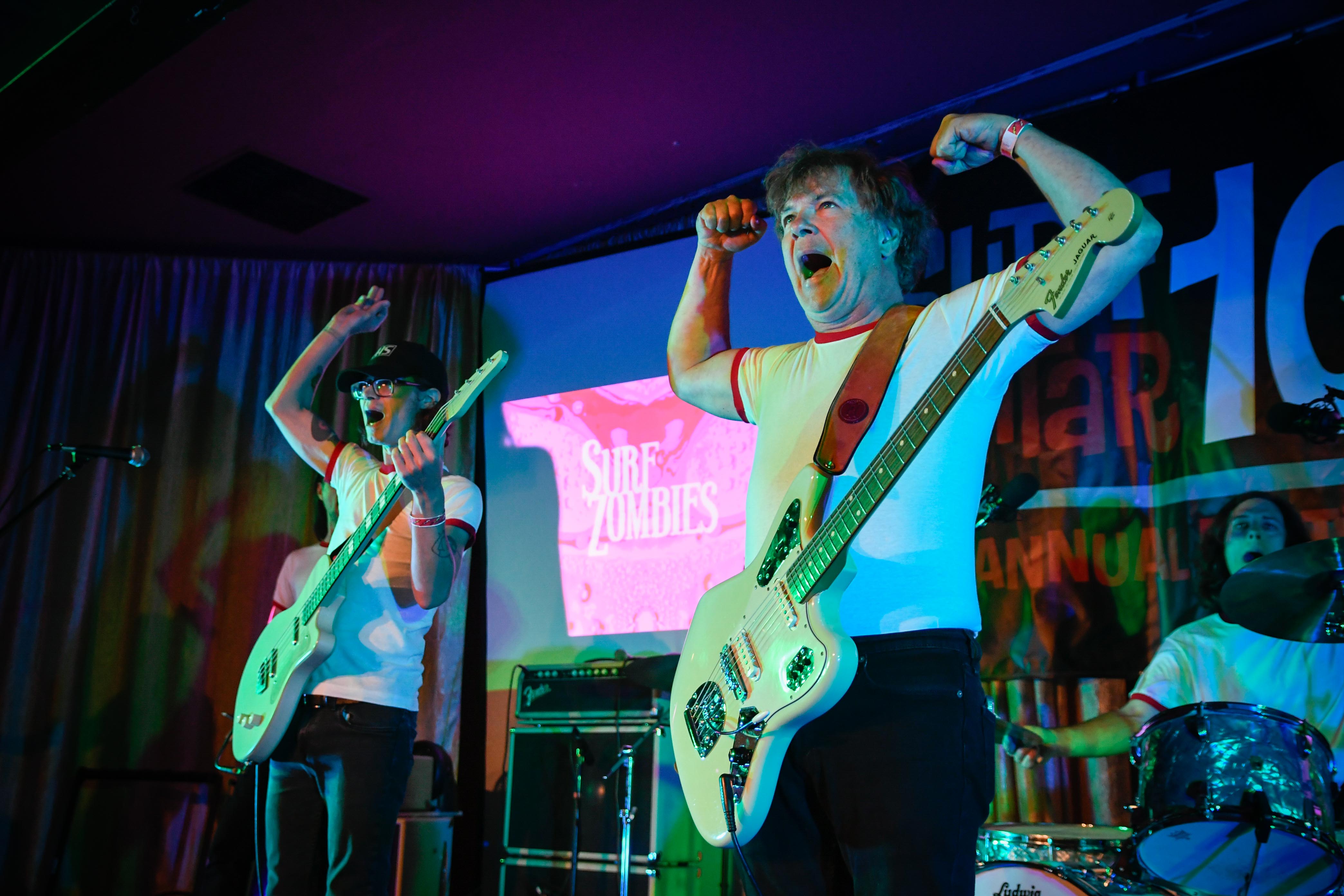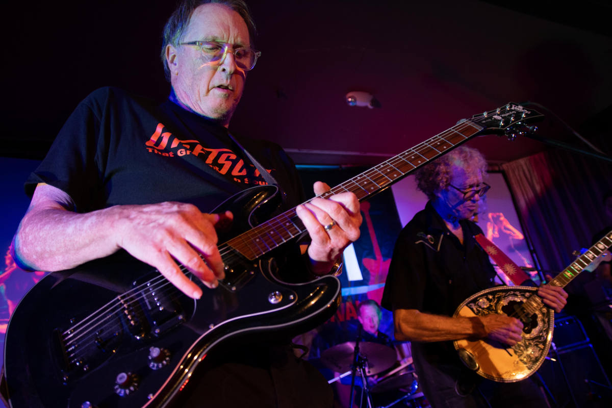 Our Legends core band this year consisted of: Tom Potts, gtr, Lee Rengert, bass (The Chancellors). Tracy Longstreth, drums (The Rhythm Rockers). Jack Freeman, sax (The Del-tones, Fabulous Nomads) and myself, filling in on guitar as needed. Our special guests were Tim Fitzpatrick, drums (Lively Ones), Will Glover, gtr (Pyramids), Bob Spickard, gtr (Chantays), along with Dusty Watson on Drums (Slacktone, Dick Dale).