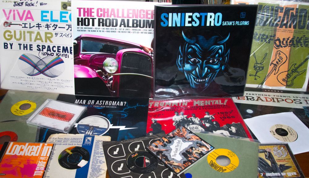 Lookit dat devil face in the picture. That's the new Satan's Pilgrims! Also got some new Wave Chargers and Five Fingers with Parasol as well as well as still steamin' stuff from Los Straitjackets, The Deep, The Isotopes, Man or Astro-man?, WJLP, and The Telestons. PLUS! I picked up some cool stuff at Record Raid including a killer eleki record by The Spacemen and THREE Louisiana instrumentals -- you don't see those every day.
